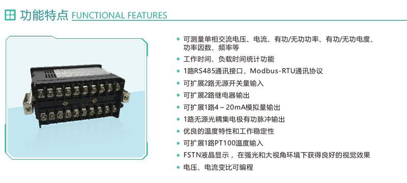 1.可測(cè)量單相交流電壓、電流、有功/無功功率、有功/無功電度、