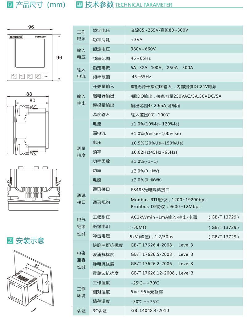 PUMG650系列低壓電動機保護控制器適用于額定電壓380V至660V、額定電流5A至500A的控制保護回路,提供了完善的保護控制措施,基于多種總線的通訊方式可以實現(xiàn)電機的網(wǎng)絡(luò)化管理.