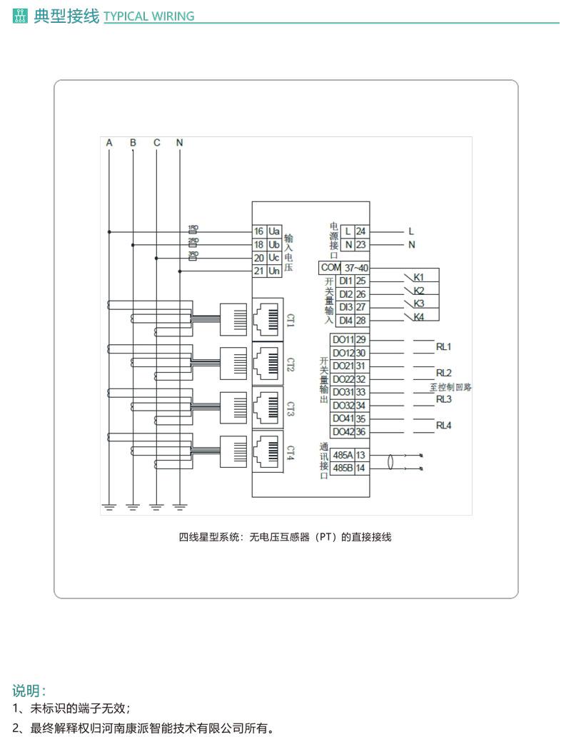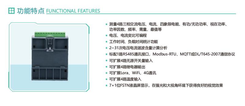1.測量4路三相交流電壓、電流、四象限電能、有功/無功功率、視在功率、
