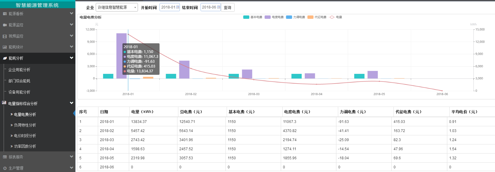 能源管理系統(tǒng)-電費(fèi)電量分析