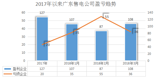 作為第一批列入全國(guó)售電側(cè)改革試點(diǎn)的省份,廣東引領(lǐng)了全國(guó)的電力改革,吸引了眾多行業(yè)內(nèi)人士的目光,售電市場(chǎng)活躍。然而進(jìn)入2018年,廣東的售電市場(chǎng)出現(xiàn)了疲軟回落現(xiàn)象,1月有35家售電公司出現(xiàn)虧損,2月,售電公司大范圍虧損,凈虧達(dá)到3600萬(wàn)元,之后幾個(gè)月雖有所好轉(zhuǎn),但依舊是收利甚微。