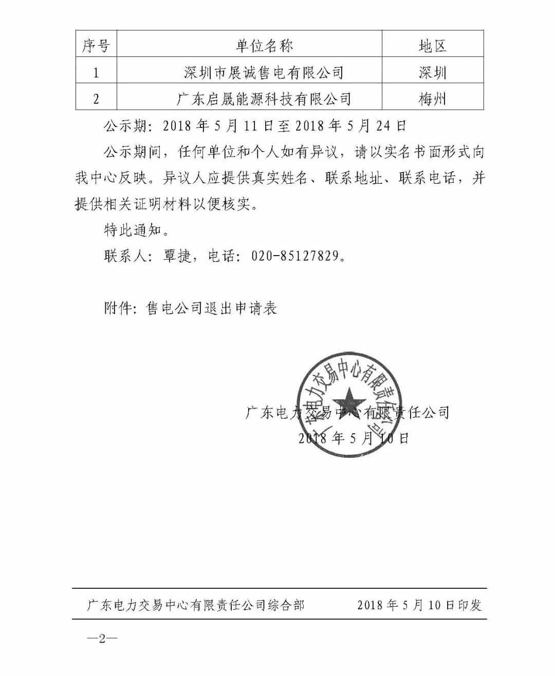 廣東電力交易中心日前發(fā)布了《關(guān)于公示深圳市展誠(chéng)售電有限公司等2家售電公司退出電力市場(chǎng)的通知》,通知中稱,收到兩家售電公司退出電力市場(chǎng)的自愿退出申請(qǐng),公示期為2018年5月11日至5月24日。這也是廣東首例售電公司退出事件。