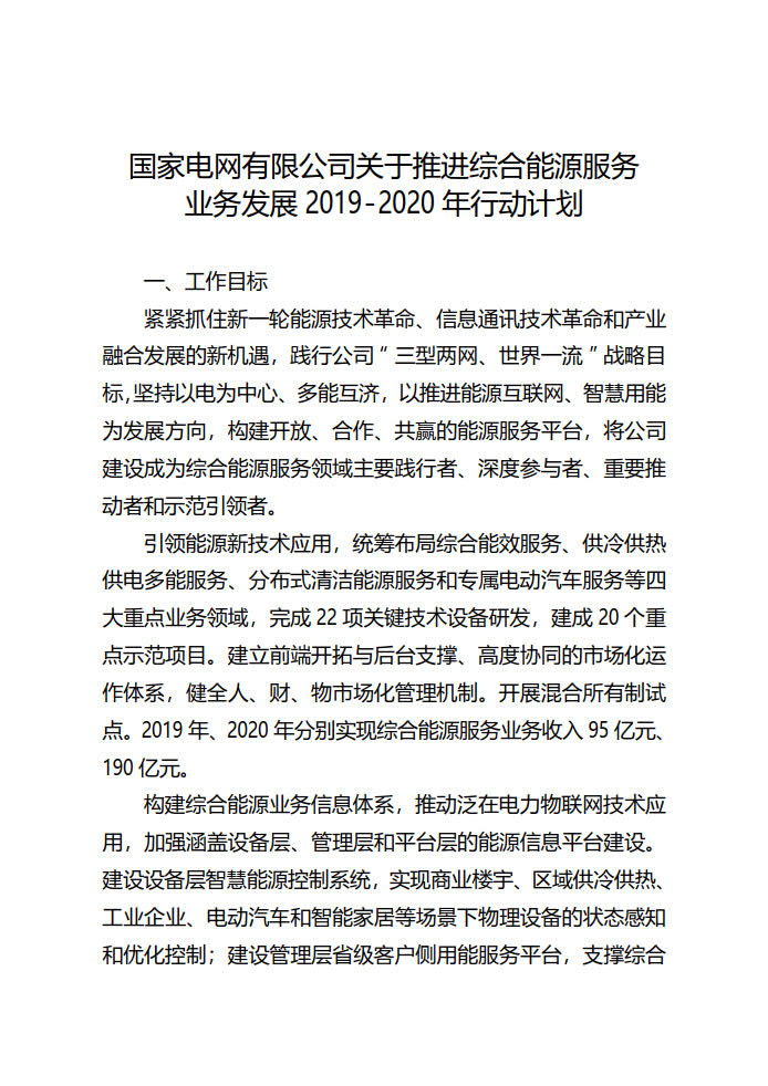 推進綜合能源服務業(yè)務發(fā)展2019-2020年行動計劃