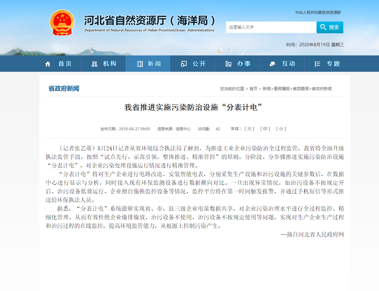 2.河北:污染防治設施實施“分表計電”升級環(huán)境汍法監(jiān)管