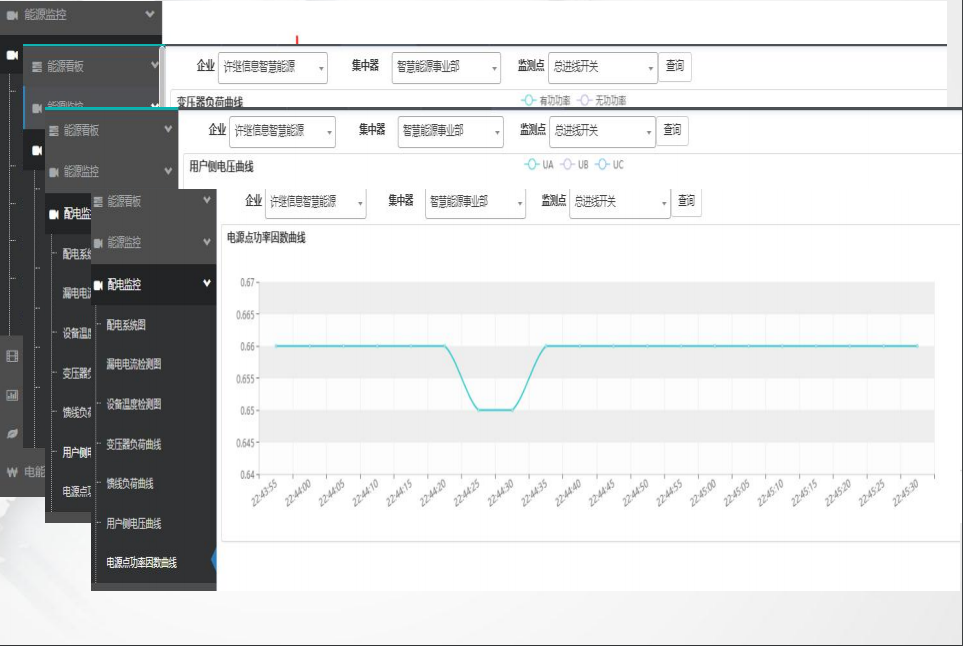 實(shí)時(shí)數(shù)據(jù)監(jiān)測(cè):(電流、電壓、功率、功率因數(shù)、開關(guān)量)支持多曲線呈現(xiàn),秒級(jí)/分鐘級(jí)/信號(hào)