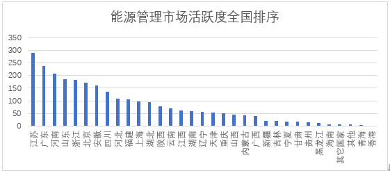根據(jù)統(tǒng)計(jì)數(shù)據(jù)整體來看,經(jīng)濟(jì)較為發(fā)達(dá)的東部沿海地區(qū)(江浙廣)的市場(chǎng)活躍度相對(duì)較高,西北地區(qū)(寧夏、甘肅)和東北地區(qū)(黑龍江、吉林)等地區(qū)市場(chǎng)活躍度相對(duì)偏弱。能源管理作為節(jié)能降耗的重要數(shù)據(jù)統(tǒng)計(jì)分析工具,與地區(qū)經(jīng)濟(jì)發(fā)展情況基本趨同也是必然。