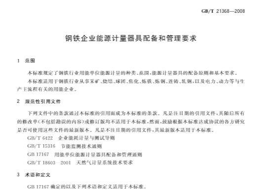 本標(biāo)準(zhǔn)規(guī)定了鋼鐵行業(yè)用能單位能配計量的種類、范圍、能源計量器具的配備原則和基本要求。